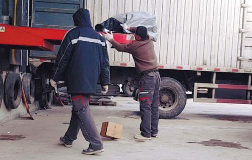 “宅急送”装车时,快件被扔进车厢内部