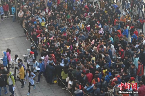 11月29日上午8时,距离2016年国考公共科目笔试开始还有1小时时间,北京市中关村中学双榆树校区的考点外已经聚集了大批等候进场的考生。中新网张尼 摄