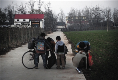 放学后的孩子们在村道上玩耍。看上去文楼村和北方的普通村庄并无二致。