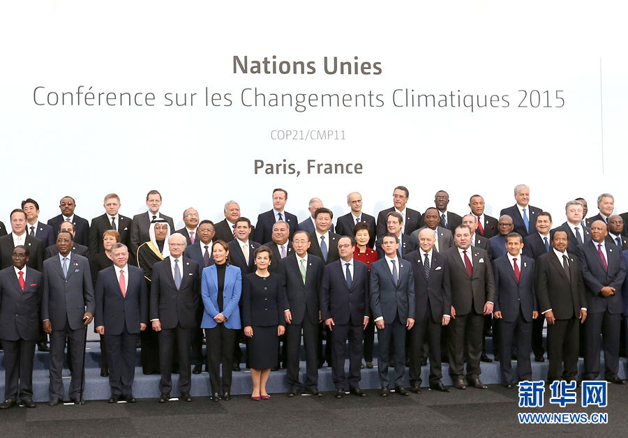 11月30日,国家主席习近平在巴黎出席气候变化巴黎大会开幕式并发表题为《携手构建合作共赢、公平合理的气候变化治理机制》的重要讲话。这是与会领导人合影。新华社记者 马占成 摄
