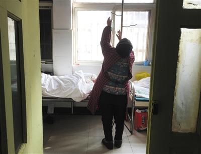 上蔡县人民医院感染科,一位老人正在为老伴儿换药。