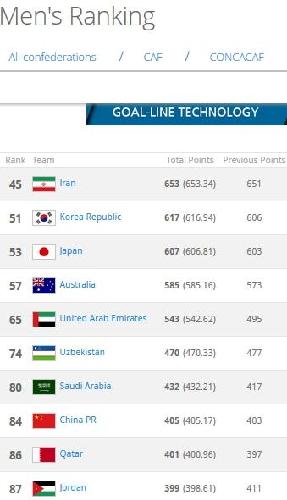 FIFA国家队年终排名:中国列第84位 超卡塔尔香港