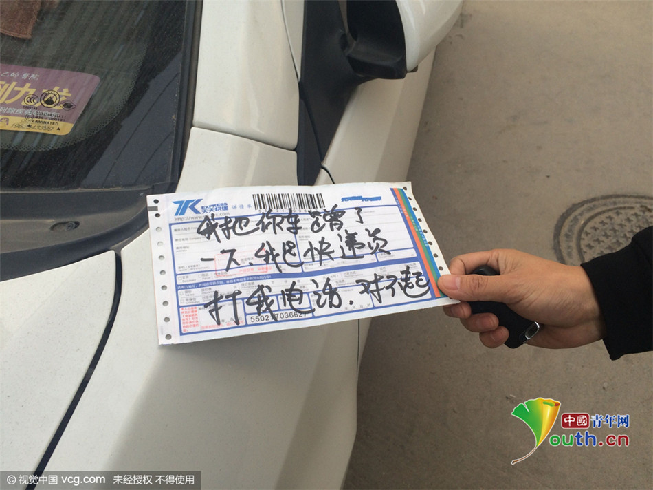 如果车主不在,您将对方的车撞了后会怎么做?咸阳有一名快递员是这么做的:他将一张空白快递单贴在被撞车辆上,上面不仅写了道歉的话语,还留下自己的电话号码。