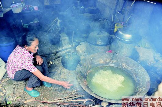 ▲在广西大化瑶族自治县七百弄乡弄合村,70岁的蓝美芳在自家厨房准备猪食(9月25日摄)。蓝美芳一家所在的大化县是广西扶贫攻坚的重点县,七百弄乡是大化县最贫穷的乡之一。 新华社记者王全超摄