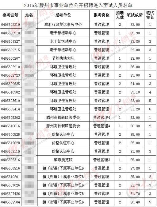 今年6月份公布的2015年滕州事业单位面试人员(综合类)中80分以上考生有22人,如今这22人都没有出现在最新的面试名单中。