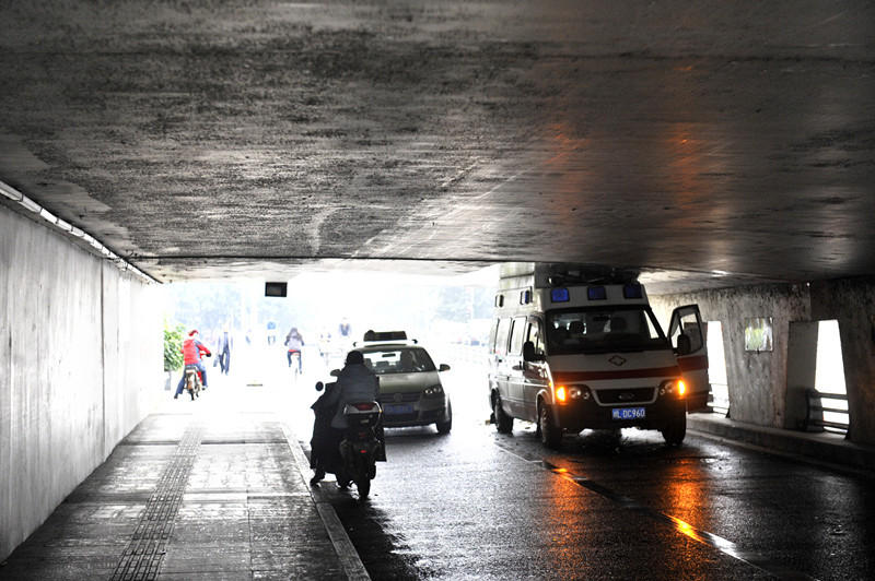 成都一救护车过隧道遭削顶 轮子放气仍出不来