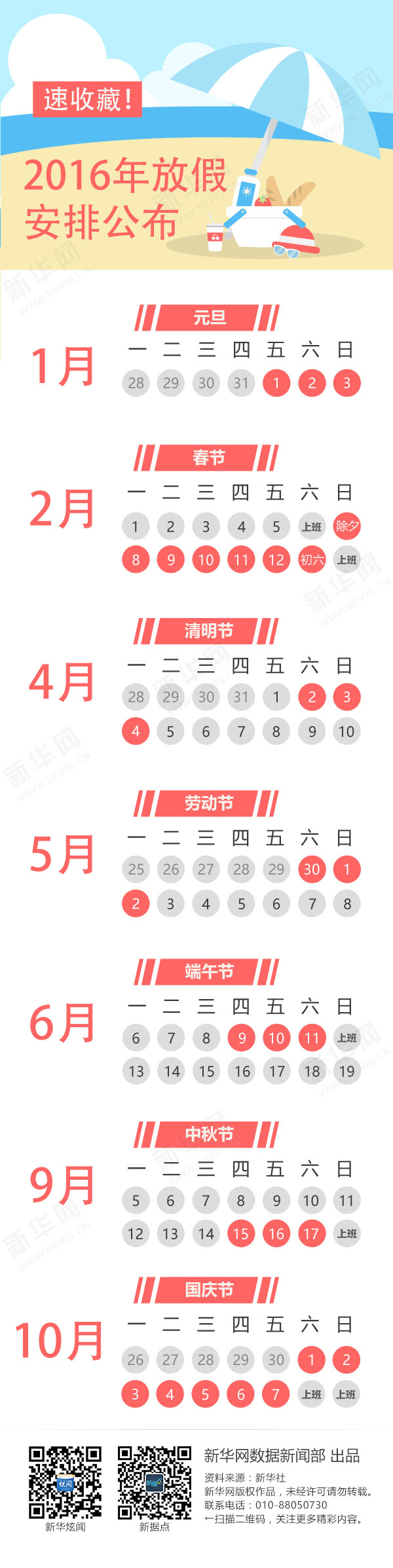 国办发布2016年部分节假日安排