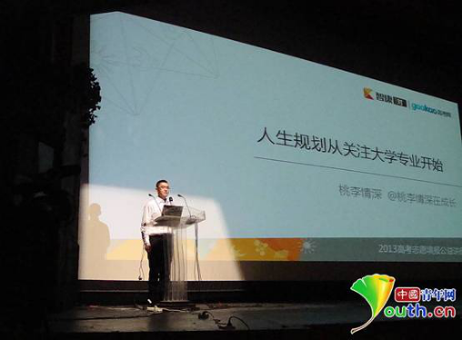 2013年4月21日,李申在西四地质礼堂举办高考志愿填报公益讲座。他在现场用真实案例为广大考生和家长阐述专业选择的注意事项。李申供图