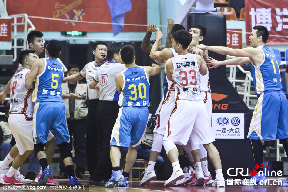 八一VS福建冲突引全武行 比赛被中断15分
