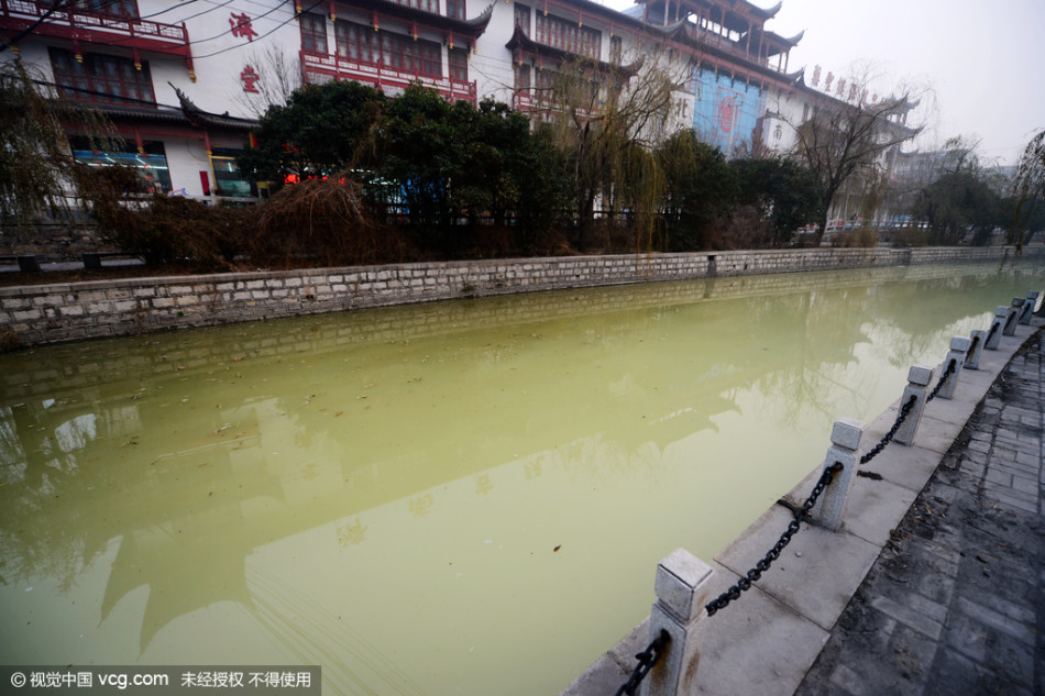 山东济南泉水河遭污染。