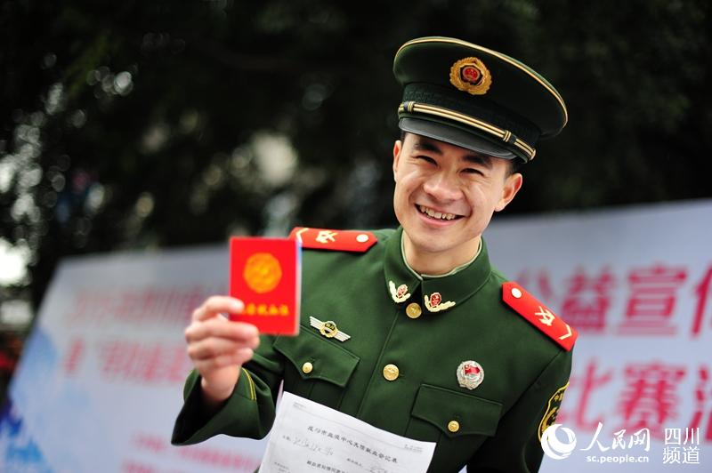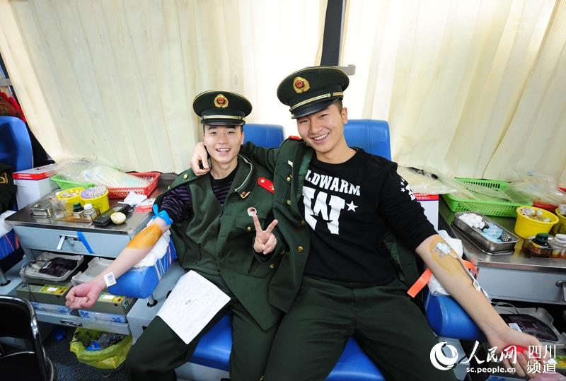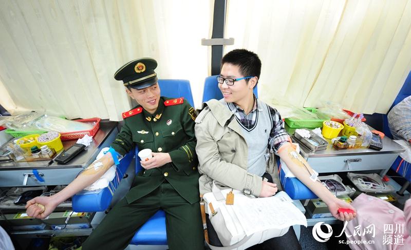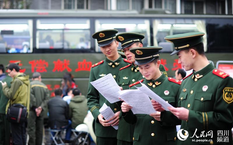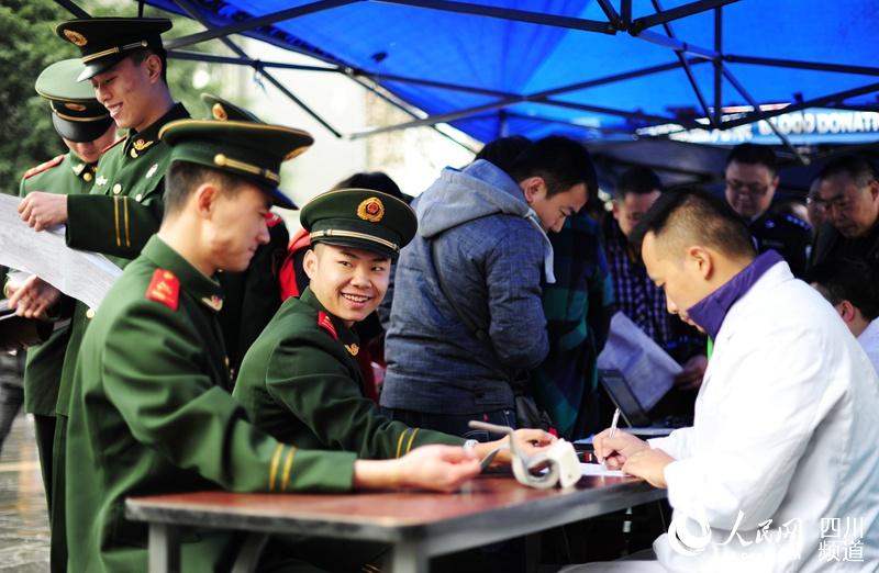 16日,记者武警四川省总队获悉,日前武警四川省总队官兵积极参加了四川省卫生计生委在成都市宽窄巷子举办的四川省公务人员无偿献血活动。(朱虹)