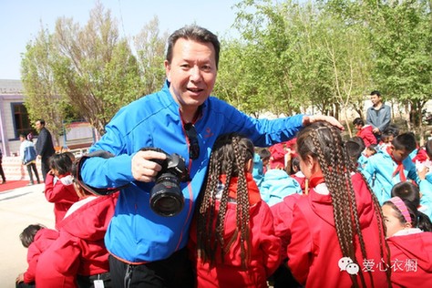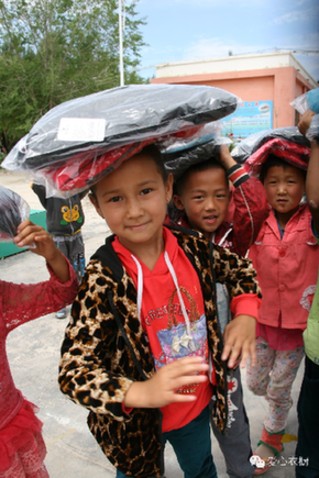 在返回的路上,他的笑容是对发放工作的最好总结。他为孩子们做得最多,当然少不了他的形象。
