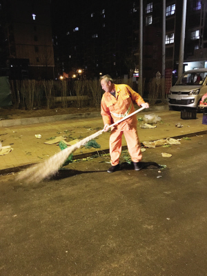 “清扫的活儿还没干完,衣服都湿了,得赶紧回家换衣服。”高其贤说,之后他回了家,换了套干衣服,又回到工作岗位上。