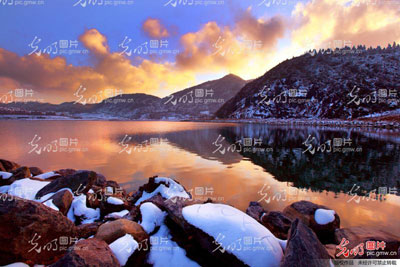12月16日,重庆丰都南天湖风景区迎来第一场雪,傍晚火烧云染红了南天湖,染红了雪后的山梁。高志相摄/光明图片