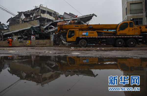记者20日晚在山体滑坡现场看到,红色泥土已经将多幢建筑物覆盖,从旁边建筑的高度对比判断,掩埋深度可达四层楼。现场地质专家确认泥石流覆盖6万平方米,平均厚度6米左右。