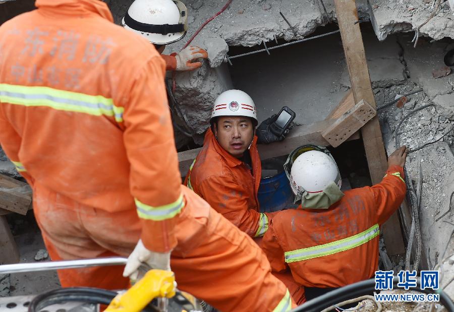 12月22日,救援人员在进行生命迹象探测。新华社记者 陈子夏摄