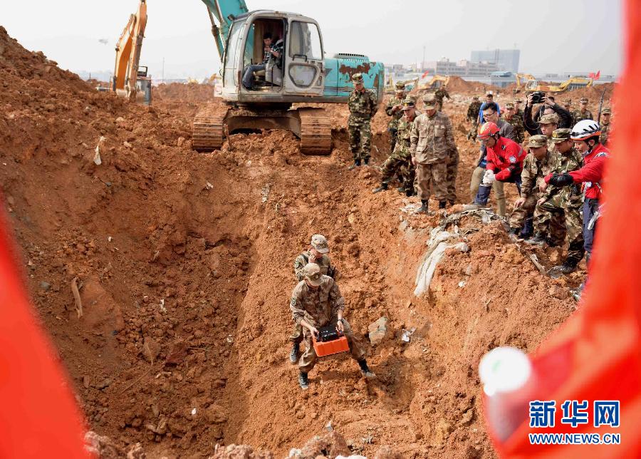 12月20日11时40分许,广东深圳市光明新区凤凰社区恒泰裕工业园发生山体滑坡,致33栋建筑物被掩埋或不同程度损毁。灾情就是命令,上千余名武警专业救援人员携带大型机械相继赶赴现场。