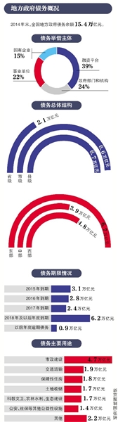 据财政部门测算,到2015年末,地方政府债务余额限额16万亿元,债务率预计约为86%,低于100%的风险警戒线,债务风险总体可控。