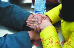 会见时紧握亲属的手。