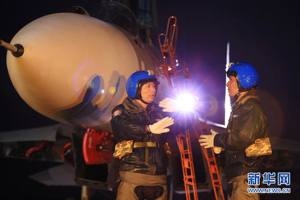 头顶掠过挂载实弹升空执勤的战机,耳边轰鸣着战机发动机试车的巨大噪音,墙上挂着各种空中维权的取证相片,飞行员全副披挂携带自卫武器……在这个团外场战斗值班简易板房上,有这样三条标语:急警报连着大使命、小座舱连着大担当、单批次系着大战略。