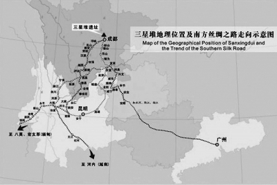 南方丝绸之路,是一条以成都平原为起点,经云南等地到东南亚、中亚及西亚的中外国际交通线,纵贯亚洲,直抵地中海。如果放在整个欧亚文明的大视野来看,三星堆与南方丝绸之路必然是两个相互关联的课题。