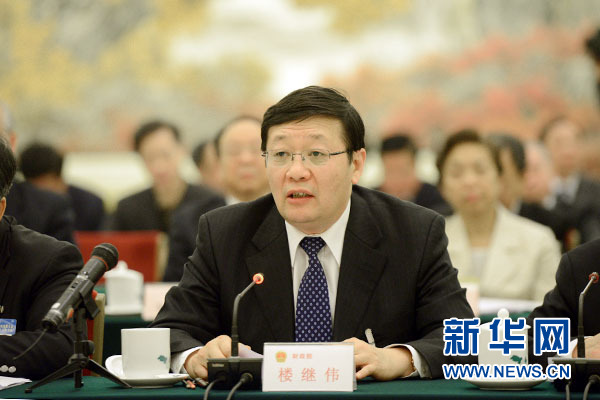 12月26日下午,十二届全国人大常委会第十八次会议举行联组会议,就国务院关于2014年度中央预算执行和其他财政收支审计查出问题整改情况的报告进行专题询问。图为财政部部长楼继伟回答问题。新华网 郭小天 摄