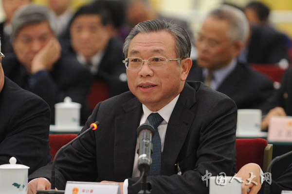12月26日下午,十二届全国人大常委会第十八次会议举行联组会议,就国务院关于2014年度中央预算执行和其他财政收支审计查出问题整改情况的报告进行专题询问。图为审计署审计长刘家义回答问题。中国人大网 李杰 摄