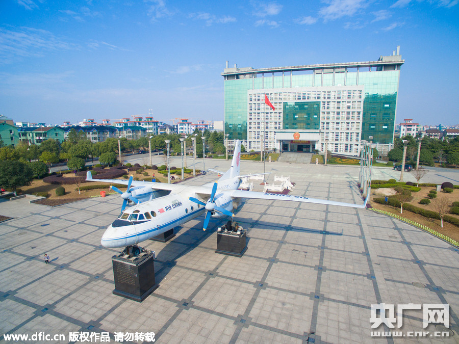 杭州惊现霸气镇政府 办公大楼前停民航客机