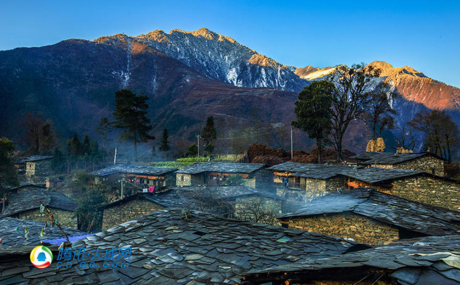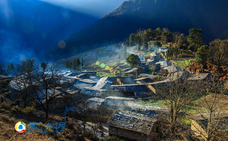 随着太阳的升起,石头堡子慢慢苏醒。