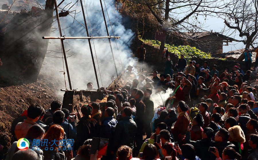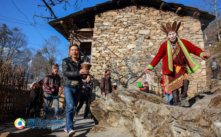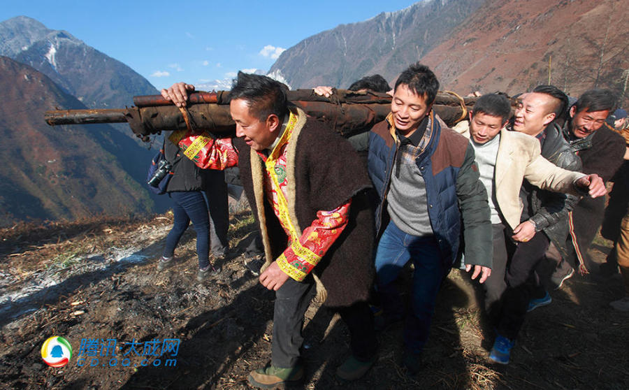 唐卡从房顶取出,木雅小伙子们急忙接应。