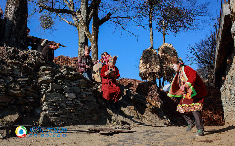 唐卡供奉好后,喇嘛又开始了跳起了代代传承下来祈福的舞蹈。