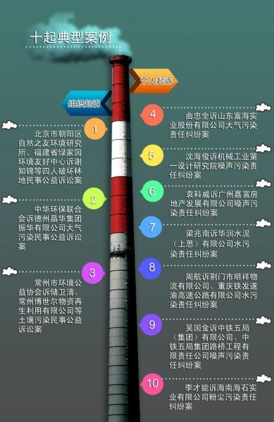 此次最高法发布的10起环境侵权典型案例中,3起是由社会环保组织提起的民事公益诉讼;其余7起案例为公民诉环境污染企业环境侵权案,涉及的污染类型有水污染、大气污染、噪声污染和粉尘污染等。