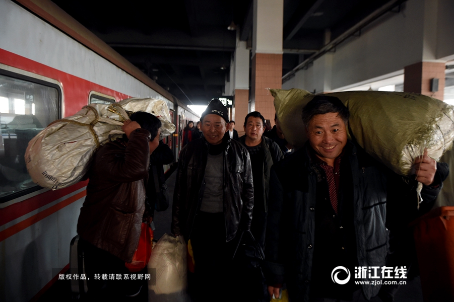 12月29日,杭州火车站,许多外来务工人员提前返乡。距离2016年春运大幕开启还有一段时间,一些提早息工的民工队伍和务工人员已经开始提前返乡。(浙江日报记者 胡元勇 摄)