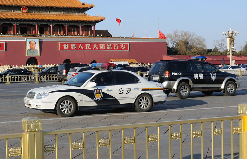 2015年02月26日,北京,特警、武警及公安的巡逻车加强天安门广场周边的巡逻执勤工作,确保全国两会顺利召开。杜佳/CFP