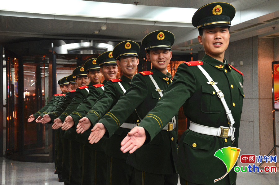 中国青年网北京3月2日电(见习记者 苏贺 通讯员 杨帆)“在长安街执勤,总会遇见问路、求助的游客,我们的哨兵都会微笑回答”,武警北京总队一支队六中队指导员刘德龙看着自发训练的战士笑着对记者说,“我们用微笑服务群众,微笑执勤已成为我中队的一张名片了”。