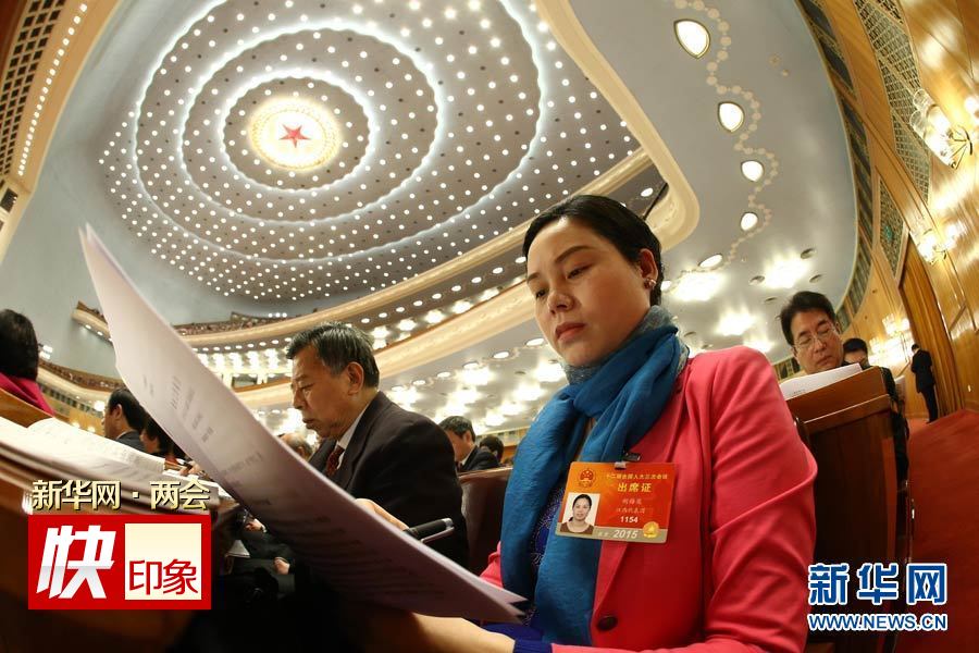 3月5日,第十二届全国人民代表大会第三次会议在北京人民大会堂开幕。这是代表在认真听会。 新华社记者陈建力摄