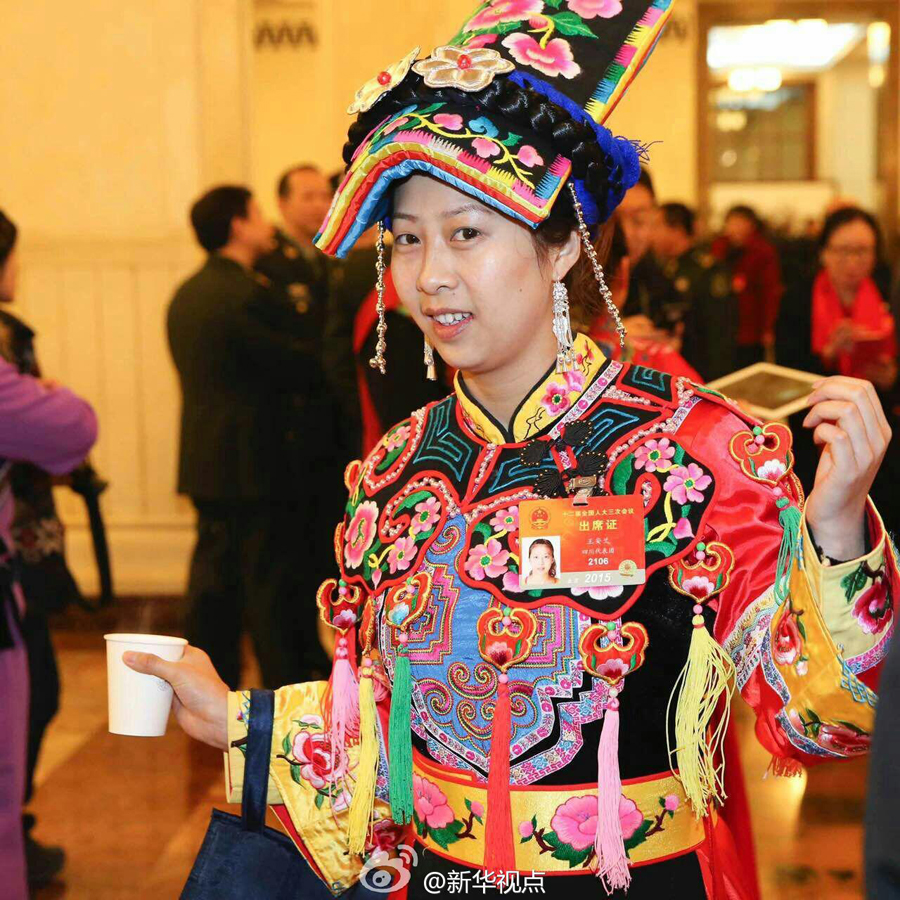 十二届全国人大三次会议开幕前代表入场,看最炫民族风。记者丁林