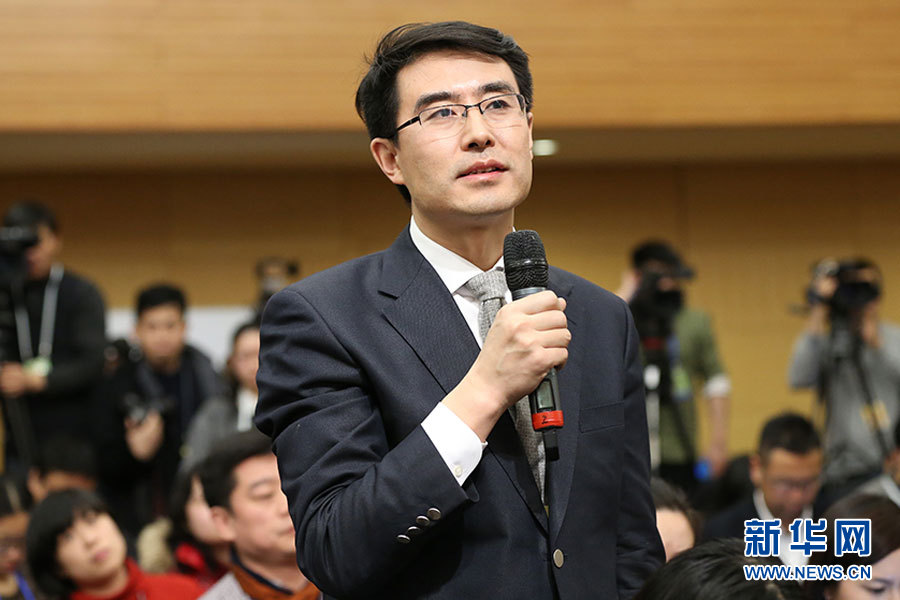2015年3月5日15时,十二届全国人大三次会议新闻中心在梅地亚中心多功能厅举行记者会,邀请国家发展和改革委员会主任徐绍史就“经济社会发展与宏观调控”的相关问题回答中外记者的提问。图为中央电视台、中国网络电视台记者提问。新华网/中国政府网 郭小天 摄