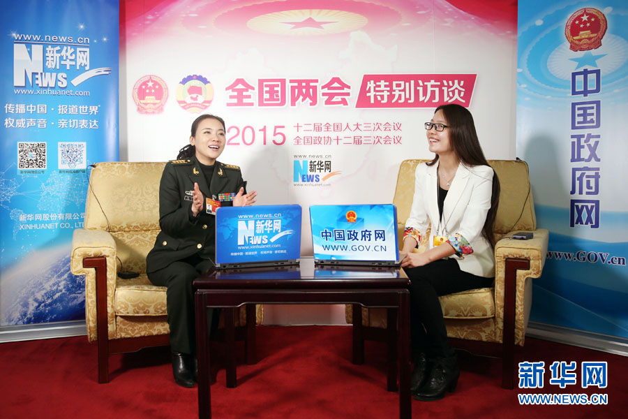 2015年3月5日上午9时,第十二届全国人民代表大会第三次会议在人民大会堂开幕。图为列席开幕会的全国政协委员陈思思在人民大会堂新华网/中国政府网两会访谈间接受记者专访。新华网/中国政府网 周柏豫 摄