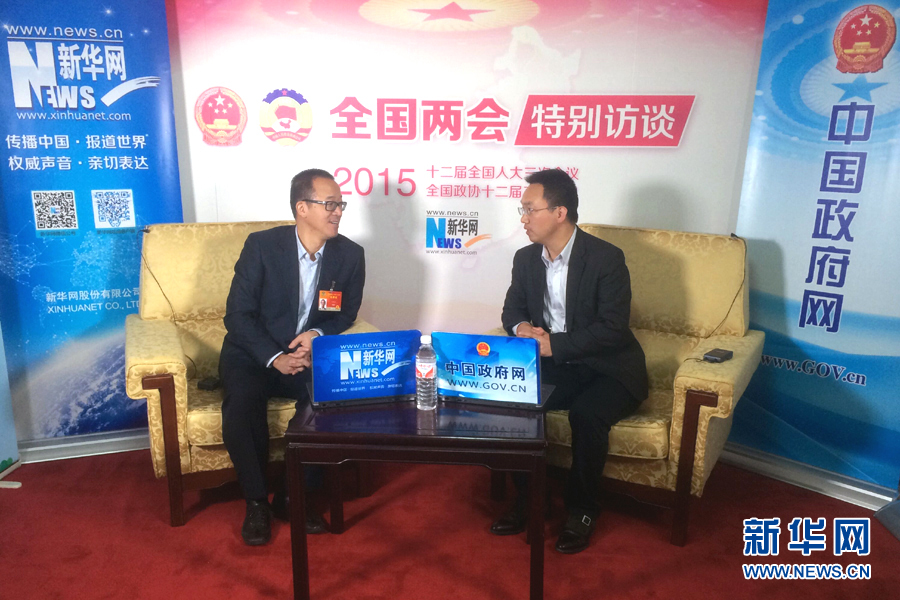 在人民大会堂新华网/中国政府网两会访谈间接受记者专访。