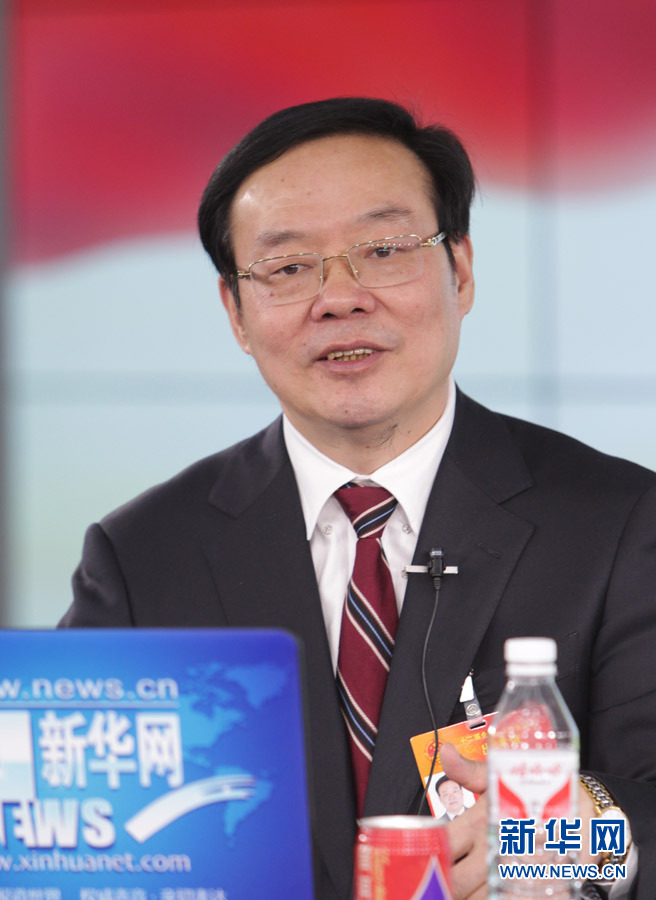 2015年3月6日,全国人大代表、广安市委书记侯晓春做客新华会客厅2015全国两会特别节目。图为侯晓春在访谈现场。 新华网 郭 研 摄