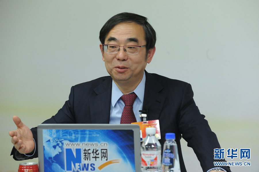 2015年3月7日,全国人大代表、江苏恒瑞医药股份有限公司董事长孙飘扬作客新华会客厅。图为孙飘扬在访谈中。新华网 贾振 摄