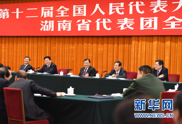 3月9日,中共中央政治局常委、中央书记处书记刘云山参加十二届全国人大三次会议湖南代表团的审议。 新华社记者谢环驰摄