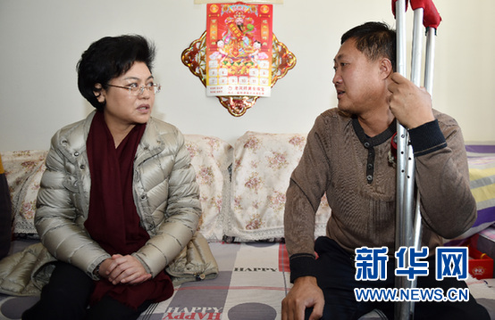 宁夏回族自治区主席刘慧在宁夏盐池县进行春节慰问活动(2月13日摄)。新华社记者 李然 摄