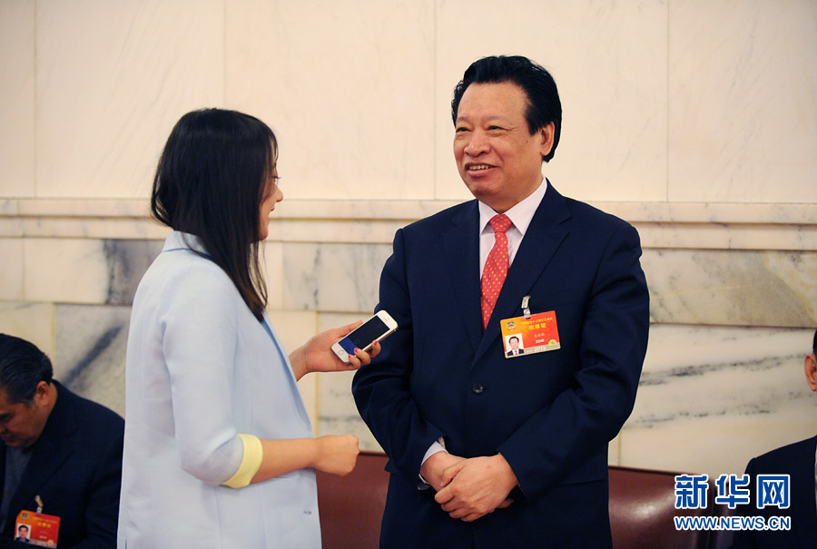 2015年3月11日,全国政协十二届三次会议举行第四次全体会议,多名政协委员就有关议题作大会发言。图为,全国政协经济委员会副主任、国家能源局原局长吴新雄接受新华网记者采访。新华网 翟子赫摄