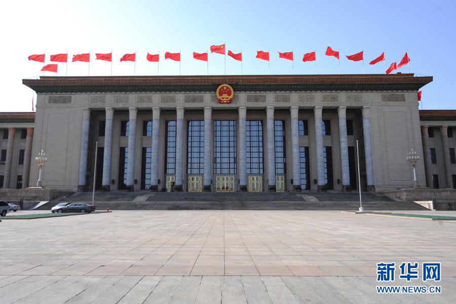 3月12日,十二届全国人大三次会议在北京人民大会堂举行第三次全体会议。图为人民大会堂外景。 新华网/中国政府网 翟子赫 摄