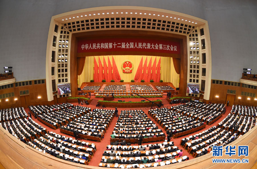 3月12日,十二届全国人大三次会议在北京人民大会堂举行第三次全体会议。 新华社记者 高洁 摄