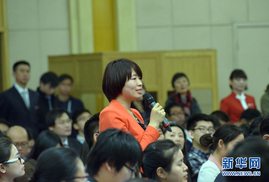 十二届全国人大三次会议新闻中心于3月12日在梅地亚中心多功能厅举行记者会,邀请中国人民银行行长周小川,中国人民银行副行长、国家外汇管理局局长易纲,中国人民银行副行长潘功胜,丝路基金有限责任公司董事长金琦就金融改革与发展回答中外记者提问。图为京华时报记者提问。新华网/中国政府网 郭小天摄