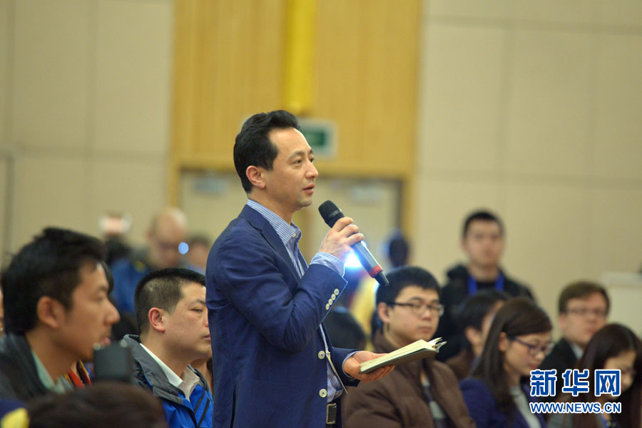 十二届全国人大三次会议新闻中心于3月12日在梅地亚中心多功能厅举行记者会,邀请中国人民银行行长周小川,中国人民银行副行长、国家外汇管理局局长易纲,中国人民银行副行长潘功胜,丝路基金有限责任公司董事长金琦就金融改革与发展回答中外记者提问。图为法制日报和法制网记者提问。新华网/中国政府网 郭小天摄