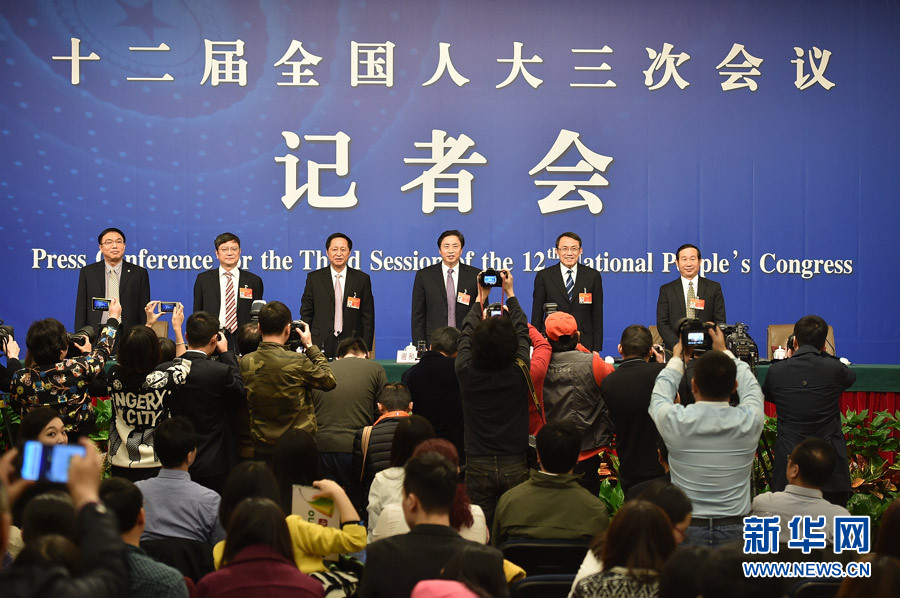 3月13日,十二届全国人大三次会议新闻中心举行记者会,邀请谢和平、沈健、罗伟其、李建保、郑强等5位全国人大代表就“完善高等教育治理结构”的相关问题回答中外记者提问。新华社记者 李然 摄